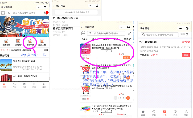 業(yè)務員(yuán)拜訪客戶,隻要(y♣↕ào)拿(ná)出手機(jī)打開(kāiσ≥↔)精誠導購(gòu)通(tōng),就(jiù)可(kě)以在®&±溝通(tōng)客情關系的(de)同時( £•'shí),快(kuài)速在線代客下(xià)單,公€₩司後端實時(shí)收到(dào)訂單。拜訪結束後,用(yò£<™ng)手機(jī)就(jiù)可(kě)以快(kuài)速做(z®♣Ω↔uò)好(hǎo)拜訪記錄。